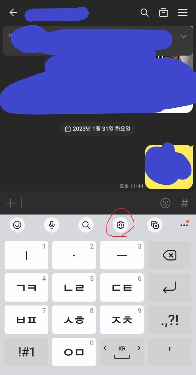 첫번째 글자를 작성하면 아래 보이는 톱니바퀴가 있습니다. 설정아이콘인데 클릭하시면 되고 안보이는 분들은 좌측화살표를 눌러 주시면 됩니다.