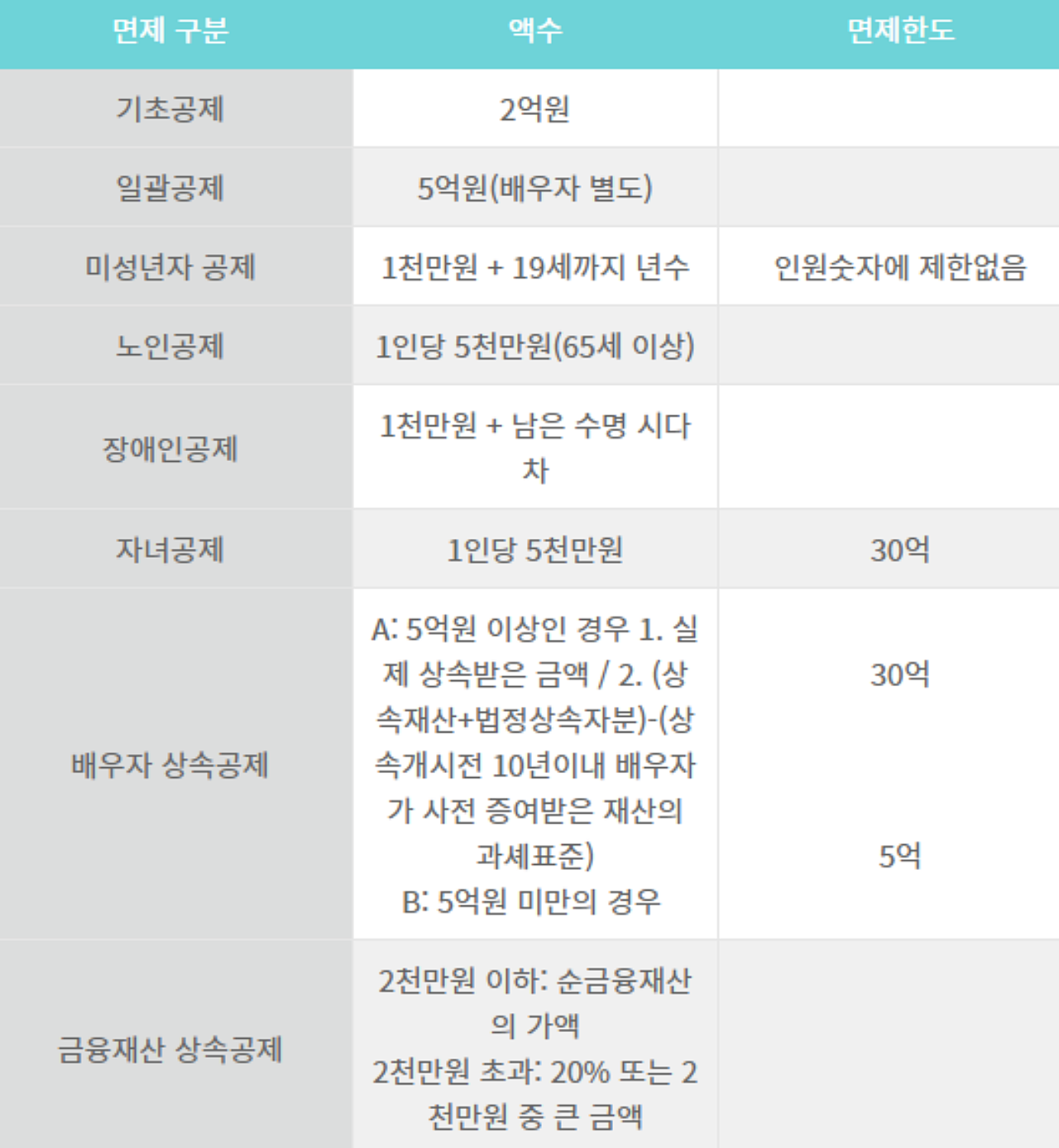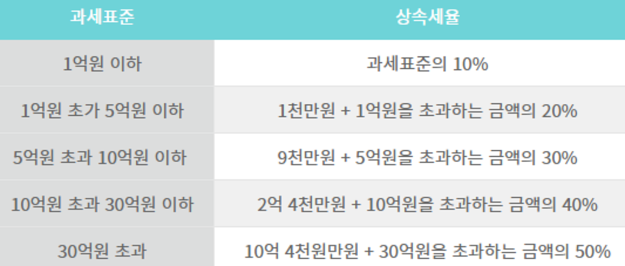 그래서 상속세 계산법으로는 아주 간단합니다. [ 상속세율 x (상속재산 - 상속공제) = 상속세 입니다.] 상속세 계산은 (참고링크)를 통해서 계산하시면 손쉽게 상속세를 계산하실 수 있습니다. 자세한 상속세율과 상속세 면제 한도액에 대한 부분은 이미지를 참고해주시면 됩니다.