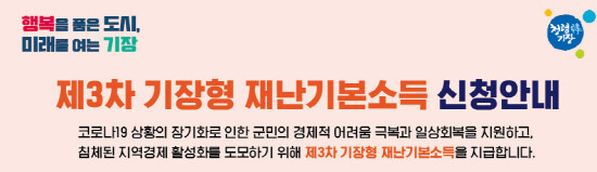 코로나가 끝이 난건지 아직인건지 모르는 요즘 기장군에서 재난지원금을 지급한다고 합니다. 기장군청에서 시행되고 있는 기장형 재난기본소득이란 명칭으로 불리는 이 지원금은 코로나19재난지원금의 성격이라고 보면 되는데 기장군에서 3차 재난기본소득으로 지원한다고 하니 기장군에 거주하시는 분이라면 꼭 확인하시고 신청하시기 바랍니다.