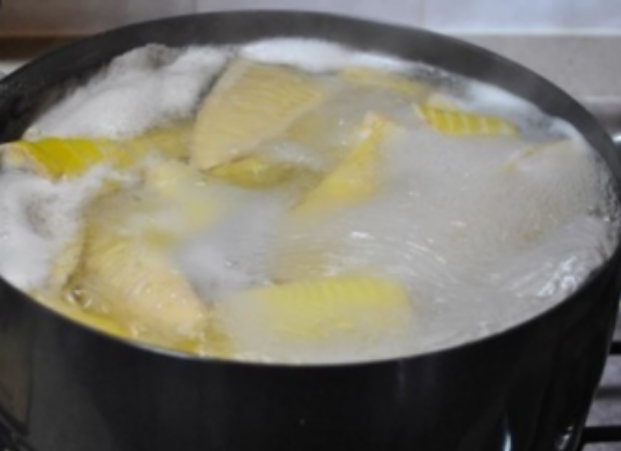 죽순 손질법으로 죽순의 겉껍질이 두껍기에 하나하나 벗겨주다보면 시간이 너무 오래 걸리게 됩니다. 그래서 두꺼운 밑둥을 뒤집어서 가운데로 칼집을 넣고 반으로 쪼개 줍니다. 그다음 가운데 빗살무늬의 죽순이 보인ㄴ다면 양쪽으로 겉껍질을 벗겨내주시면 죽순이 분리되게 됩니다. 이때 겉껍질은 일반쓰레기로 분류 해주시기 바랍니다. 다음으로 쌀뜨물에 삶아줘야 합니다. 겉껍질을 벗긴 죽순을 쌀뜨물을 받아놓은 통에 들어갈 수 있게 잘 짤라서 그속에 고추를 한두개 정도 넣어주고 푹 끓여주시면 되는데 최소 2시간 정도는 삶아주셔야 합니다. 여기서 쌀드물은 처음에 끓으면 넘칠 수 있습니다. 그러니 뚜껑을 덮지 않고 끓이다가 나중에 불을 약하게 줄이고 뚜껑을 살짝만 덮어주시고 끓이면 됩니다. 푹 삶았으면 이제 찬물에 담가두어야 합니다. 그렇게 하면 죽순 가운데 하얀 삭회질 같은 것들이 생기게 되는데 그것을 씻어서 담가두어야 합니다. 그리고 빕살무늬 모양으로 썰어주시면 됩니다.
